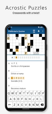 Acrostic puzzles, also known as Anacrostics and Double-Crostics, are like crossword puzzles with a bonus prize. The app includes 50 quality puzzles from Acrostica, Acrostics by Cyn, Lovatts, PuzzlesPenny Press and Puzzle Baron. Your goal is to reveal a hidden quote in a grid by correctly answering crossword-style clues. This combination of crossword and cryptogram will stretch your brain with an entertaining workout. Each letter in the quote is linked to a letter in one of the clue answers. As you fill in more and more answers, more letters will begin to fill the quote grid, until eventually the entire quote is revealed. You can also do this in reverse. As words of the quote become clear, they will fill in the clue answers!