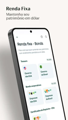 Invista com solidez em renda fixa global em ativos dos Estados Unidos e outros países como Tesouro, Bonds e CDs para manter seu patrimônio em dólar. (1) A renda fixa é ideal para quem busca maior previsibilidade, com a solidez histórica do mercado americano e a força do dólar.