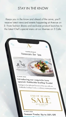 And speaking of experiences, our app also gives you first dibs on all of the latest news and events happening at Avenue on 3. From fashion shows and exclusive product launches to VIP access to the hottest clubs and restaurants in town, our app keeps you in the know and ahead of the curve.