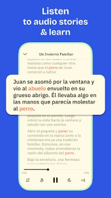 • Audio Stories – Learn words in context through engaging audio content.