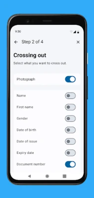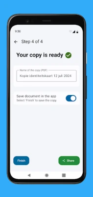 - Take a photograph of your identity document. - Cross out information that is not relevant for the recipient. - Enter for whom the copy is intended and for what purpose the copy is required. This text is superimposed with the date on the copy, as a watermark. - You can then send, print or save the copy for subsequent use.