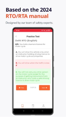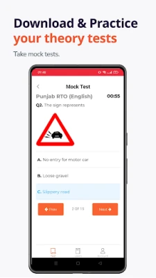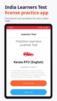 Learners Test provides free practice/mock tests to help users prepare for their exams. The tests are based on the official RTO driving manual and allow users to practice in English and various regional languages. Supported regions include Delhi, Tamil Nadu, Maharashtra, Gujarat, Andhra Pradesh, Telangana, Kerala, Chandigarh, Uttar Pradesh, Madhya Pradesh, West Bengal, Bihar, Rajasthan, Odisha, Jharkhand, Karnataka, Punjab, Haryana, Chhattisgarh, Assam, Jammu and Kashmir, Uttarakhand, Tripura, Himachal Pradesh, Goa, Puducherry, Manipur, and Meghalaya.