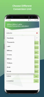 You will get the number of conversions in hundreds, thousands, lakh million, crore, billion, trillion, Arab and kharab without waiting for a second.