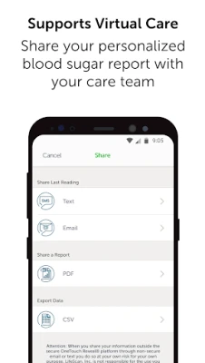 • Share your progress with your care team between visits – you can email your personalized diabetes report.
