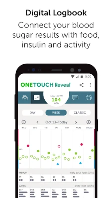 ​The OneTouch Reveal® app can be used to track information from blood glucose meters to support diabetes management.