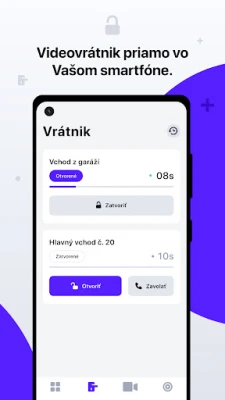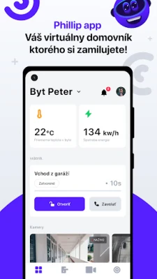 Aplikácia pre ovládanie videovrátnika, prehľad o bezpečnosti a energetickej spotrebe bytu.